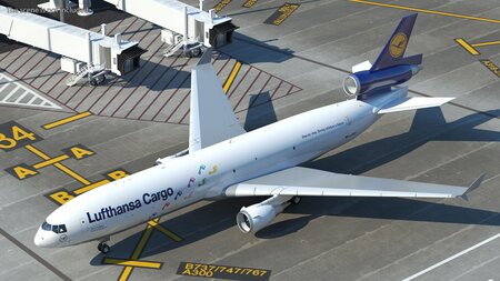 McDonnell Douglas MD11 Tri Jet Airliner Lufthansa Cargo with semi-detailed interior. Doors can be opened.