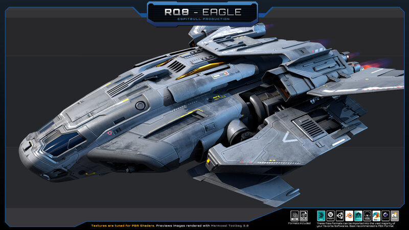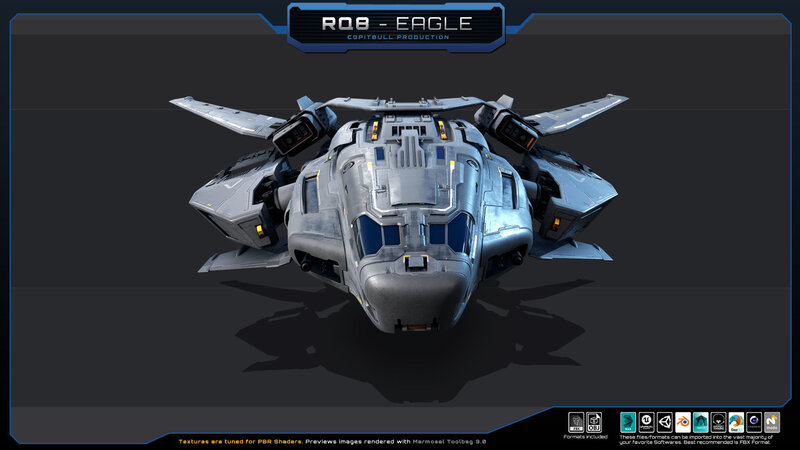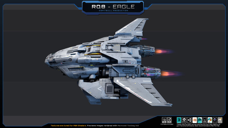 This Original package contains one Sci Fi RQ8 - Eagle / Fighter (not rigged). Model inspired by my Federation Frigate BE2 design, you can find this model in this CGPitbull account (This design is my own concept, does not repeat any existing work. You can use it without a doubt about copyright).