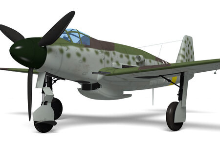 This fighter was planned based on the prototype me309 built by Messerschmitt during WW2. No real aircraft was built. The model's Landing gear is divided into flight and landing state parts.