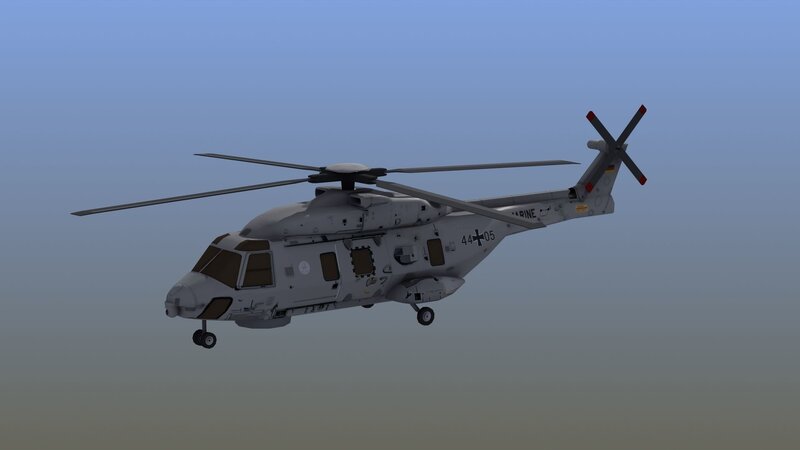 NH90 Helicopter LD1, German Navy. Great multipurpose 3D model - ideal for offline rendering or real time uses such as games or simulation.