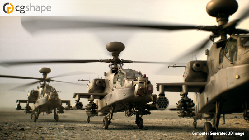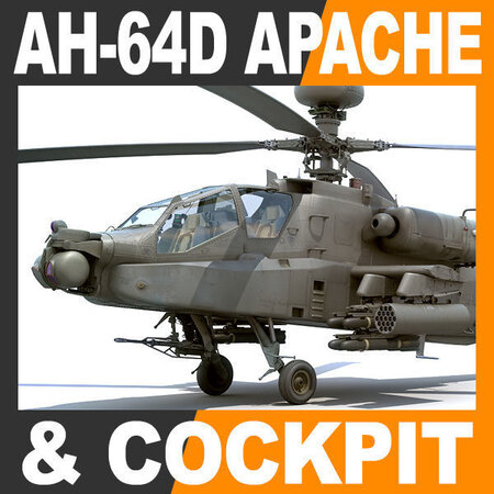Realistic, detailed Boeing AH-64D Apache Longbow Helicopter model including: