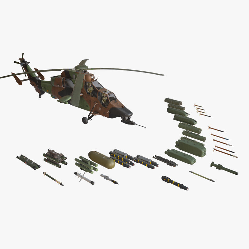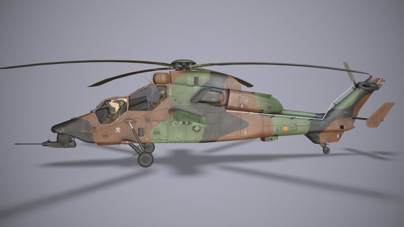 The Eurocopter EC-665 Tiger is a four-blade, twin-engine attack helicopter