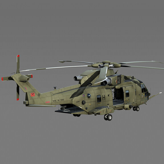 A highly detailed 3D model for EH101 Merlin HC3 with RAF 28 Squadron texture.