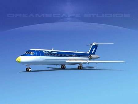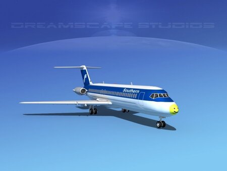 This model is build very near to scale and is within a couple of percent of the actual general dimensions. It has a detailed exterior including radio antennas and pitot tubes. Landing gear have been finished with a moderate amount of detail too. The model is fully textured. In addition this model comes with animateable ailerons, flaps, elevators, rudder, landing gear, landing gear doors and turbines. The model is available in several different formats and we are providing the DC-9-30 model in a range of liveries.