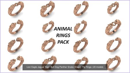 MILLENNIAL AUTOMOTIVE LLC » Our products » Animals » Lion Eagle Jaguar Tiger Bull-Dog Panther Snake Dragon Pig Rings 3D Model Collection