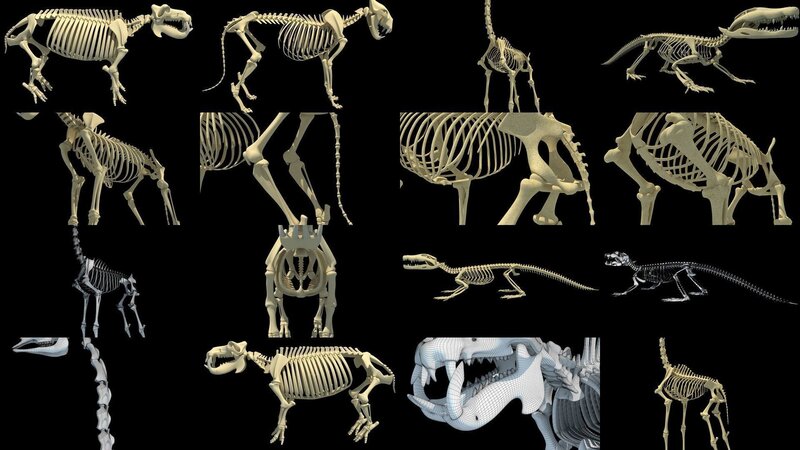This is a collection of 4 high quality African animal skeletons 3d models.