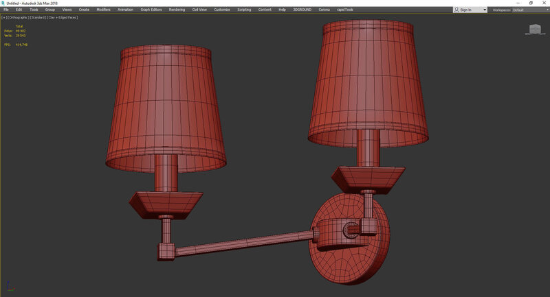 Name: Sconce_Maytoni_Beira_MOD064WL_02N Version: 2013 Units: Millimeters Dimension: 418.43 x 220.55 x 256.38 Polys: 14 010...turbosmoth 1 iteration _ 49 402 Model Parts: 1 Render: V-Ray Formats: 3Ds Max 2013, OBJ
