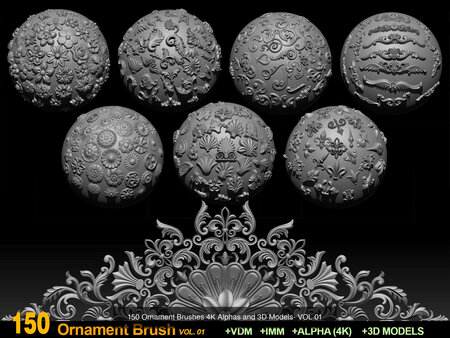 ORNAMENT BRUSHES ALPHA and 3D MODEL- VOL 01 - 02 - 03 - 04 - 05 3D Model Collection