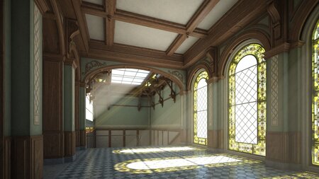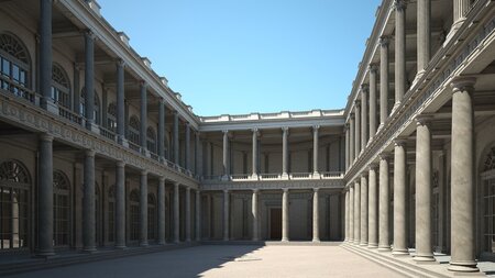 Detailed 3D model of a classical courtyard with staircase. Suitable for high resolution close-ups. Real world scale.