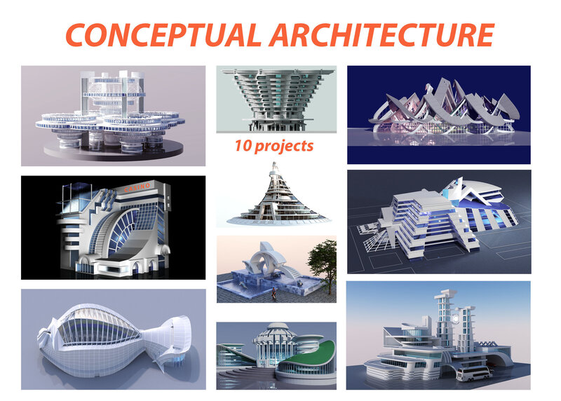 Conceptual Architecture. Nowadays, an architect is given the opportunity to bring his ideas to life, thanks to modern materials and construction methods. I offer my fantasies, I hope you will be inspired and I will be glad if something will be used in your projects collection 10 projects