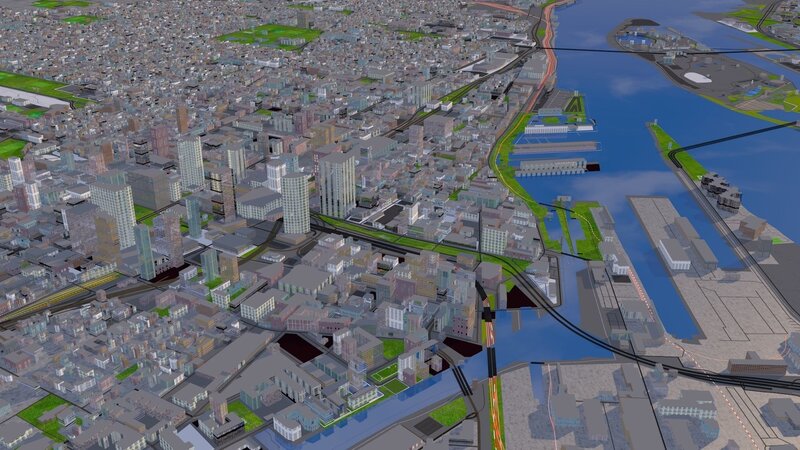 3D representation of Montreal_USA using 2021 map data c4d/maya/blender scene will render perfectly. For other formats import in your 3d program and use physical sky and sun. No global illumination used. Perfectly unwrapped uv proper materials and naming. No complex shaders used, all are textures. You will get same look in all 3d program. If the building textures not scaled correctly use cubic/box/triplanar projection instead of UV.
