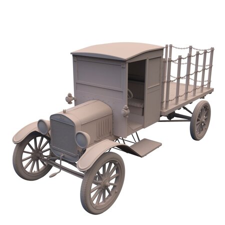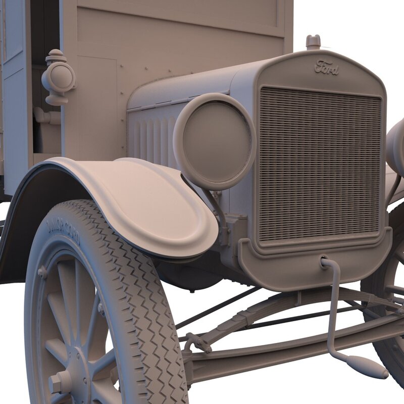 This high resolution 3,263,314 poly CAD model was created in SolidWorks™ from research, field measurements and photographs. It is full-size (1:1) and accurately scaled, with most parts individually modeled. The modeling quality allows for extreme close-ups and rendering. It is ideally suited for hero and foreground shots within early 20th Century period sets and CG’s. There is no motor, only the “basic block” and oil pan that shows under the chassis.