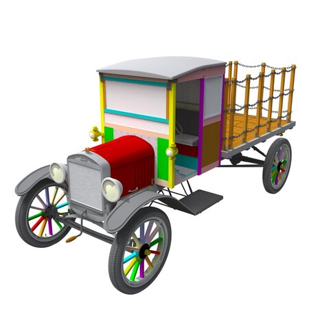 A "heavy duty" chassis was soon offered, called the Model TT, with a longer 125" wheelbase and offered with a worm-drive rear-end, but with a top speed of about 28 MPH. A wide variety of bodies were offered by owners and independent coachbuilders to fit the standard TT chassis, of which the utilitarian "Stake" or "Flat" bed was the most popular. They were usually quite colorful, and emblazoned with the company name as an early form of "rolling advertisement".