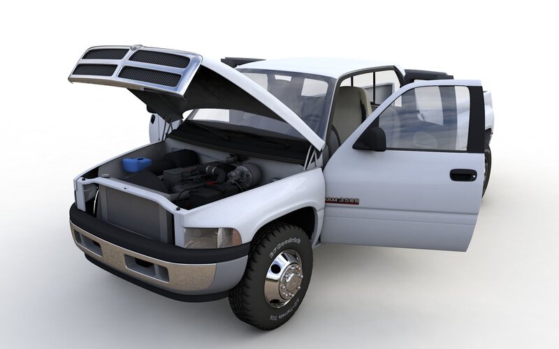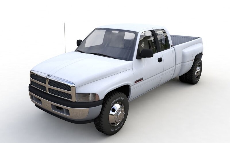 High detailed 3D model 2001 DODGE RAM 3500 DUALLY, from inside and outside.