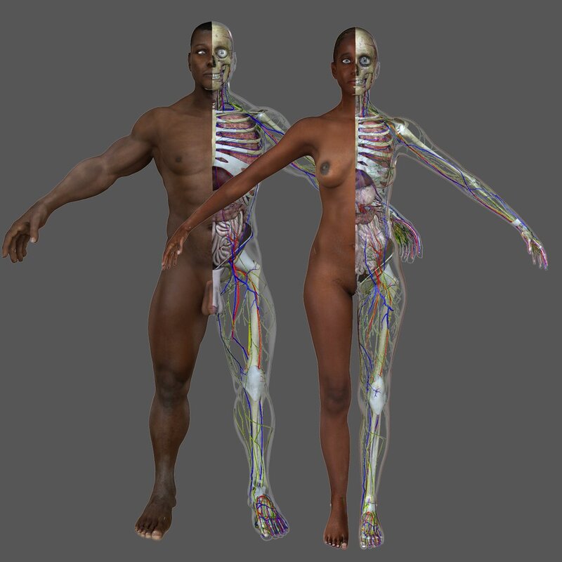 Male / Female African American Full Body Anatomy Combo (Maya / 3DSMax)