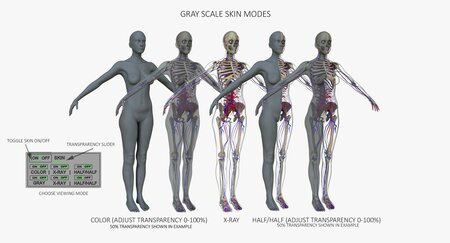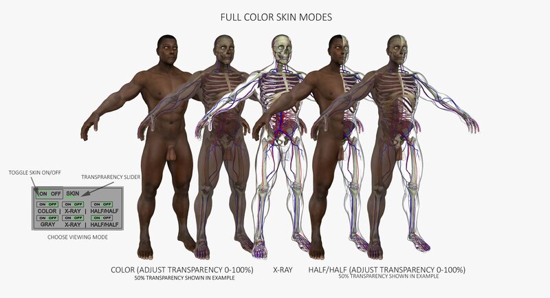 -Several x-Ray Body shaders can be toggled on or off to see how the skin is positioned over systems
