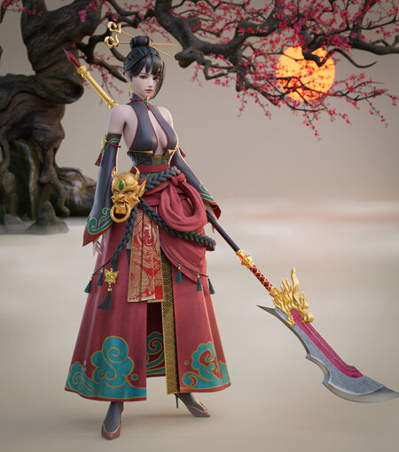 Rigged Female Model with Facial Blend shapes Low-poly 3D model