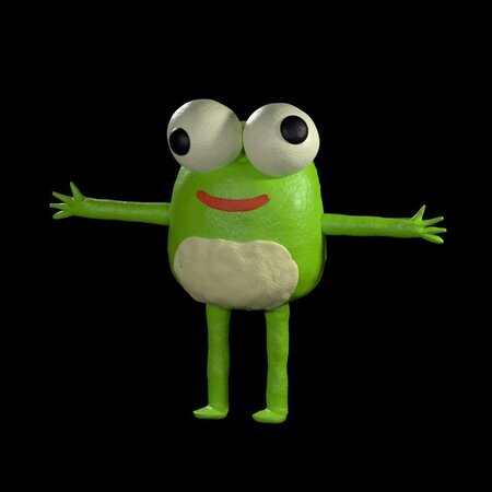 plasticine frog in t pose. Ready for games and renderings of toys. Has Normal , AO , Roughness texture make full in blender