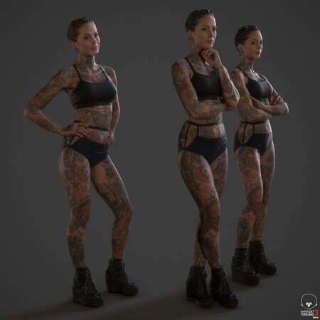 Full body tattoo model Femke, 3D scanned by a photogrammetry capture studio.