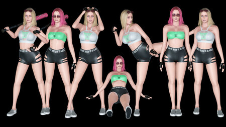 Costume (total 20,892 verts) / Sunglasses 2 positions, Haltertop, Tubetop, Gloves, Shorts, Underwear, and Shoes. 4k normal, albedo, roughness, metalness, alpha.