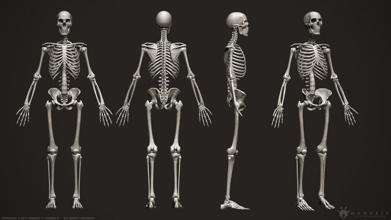 Super High quality Sculpture of Human skeleton. Includes all mayor bones of the human body, and each bone is a separate object.