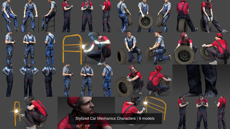 Collection contains 9 stylized characters 3d model ready for Virtual Reality (VR), Augmented Reality (AR), games and other real-time apps.