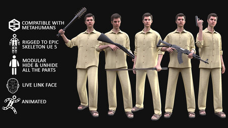 (New version - UE 5.1-5.2) 100% compatible with male Metahuman (Normal/Average body - MH Skeleton) This is not a Metahuman's body and face. This is our creation. But this body has exactly the same shape as the Metahuman's body (Normal/Average) So you can put this Outfit on your Male Metahuman (Normal/Average)