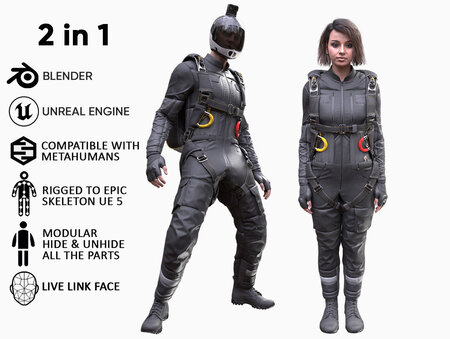 » Mens and Womens Skydiving Uniforms - Modular - Rigged 3D Model Collection