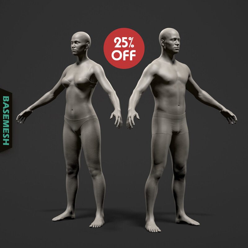 These are high quality realistic 3D models made in Zbrush. They can be used for game asset creation, cinematics, or advertising. Speed up your workflow by using these character as is or modify them to your liking. The assets can also be used as a mannequin for 3D clothes creation.