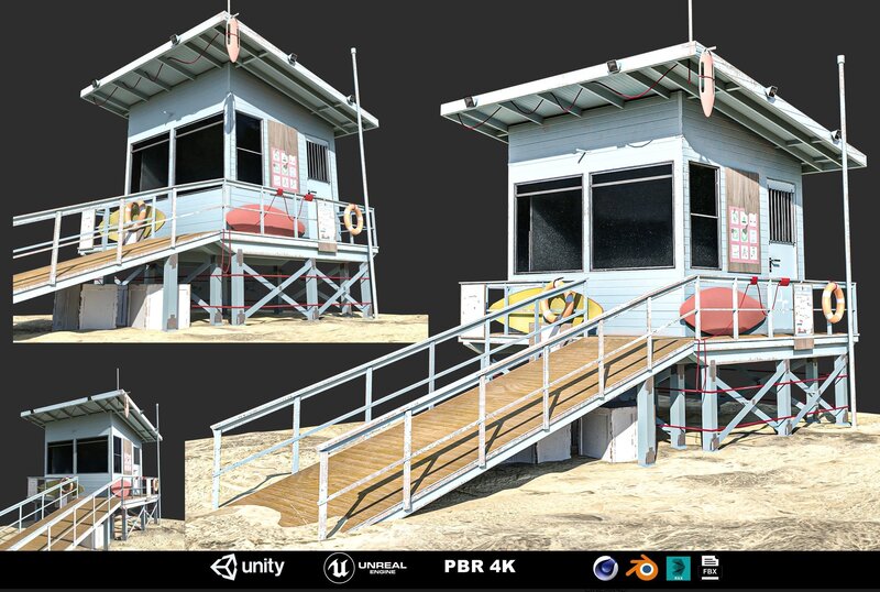 Foldable Wood Beach Sunbed Lounge Chair 3D model
