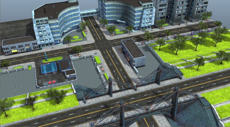 Pack of several city buildings and various props such as fences, flowerbed, signs, trees, etc. Created in Maya 2016, scene has some lighting setup. Also scene exported as FBX and OBJ formats.