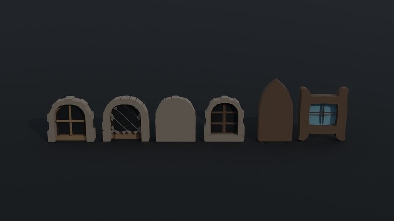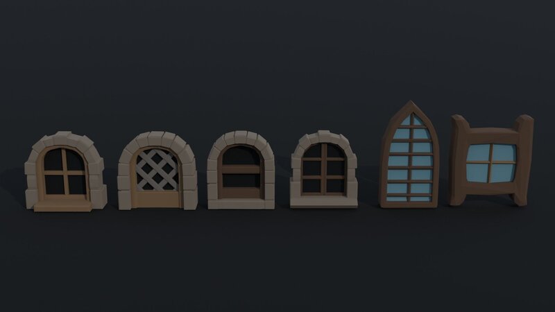 Cartoon fantasy windows Polygonal Style Low-poly 3D model