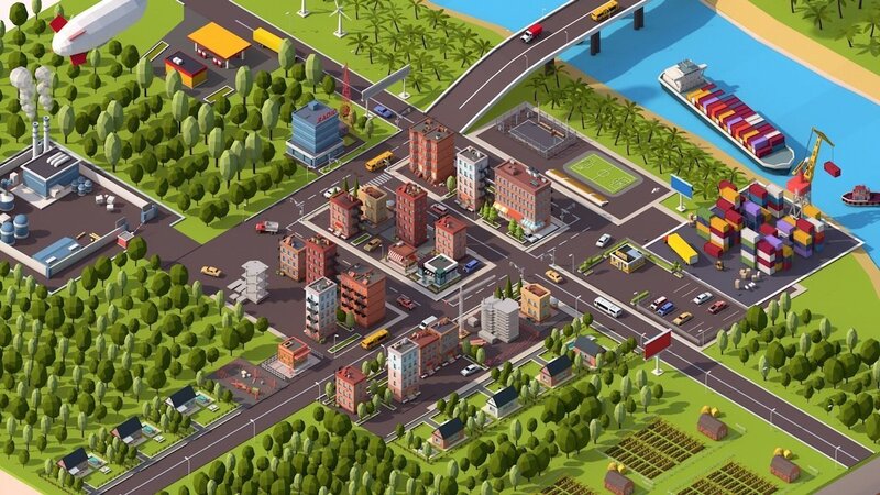 Cartoon Low Poly US City Asset v2.0 Created on Cinema 4d R20 (Render ready no plug-in) Geometry : 856 528 polygons 15 Buildings, 10 City Cars, Factory,Port, Ships Road elements, landscape Formats: .c4d, .obj, .fbx, .3ds Include PSD file with postproduction All layers separated and named Animation ready Factory, farms,Houses,Cottages, Constructions,Shop,Cafe,Gas station,Parking,Bus station City Vehicles :Zeppelin, helicopter, tug boat, container ship, bus, van, sedan car, jeep, truck, container truck,passenger bus.