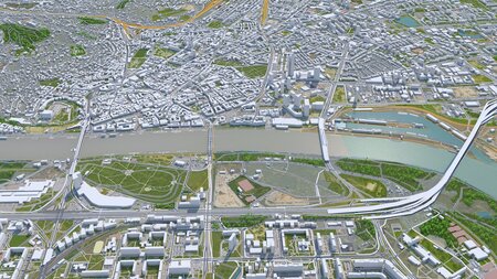 Accurate 3D city model and its surrounding area based on GIS data Year 2022