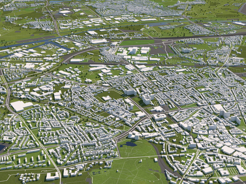 A DETAILED 3D MODEL CITY MAP OF GELSENKIRCHEN, GERMANY:
