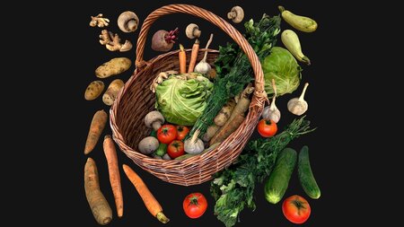 Game ready models.Stylized and detailed Vegetables and Fruits Bazaar Set fully textured, sculpted and rendered with Physical based rendering (PBR) - Shown images have been rendered in Marmoset Toolbag .The models contains lods, detailed information on the images. The set contains 74 models. High Quality textures (PBR).