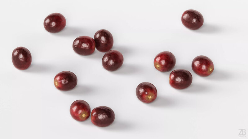 This is a 3D model of a red grape. It was scanned and prepared for photorealistic renderings, close-ups, stills, and animation. The grape model is ready to be inserted into your scene out of the box.