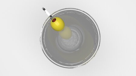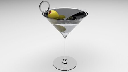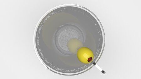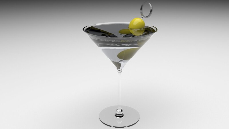 The model presents a martini drink, which includes olives. What distinguishes this model is the realistic finish of the glass.