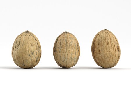 Three different, highly detailed, photorealistic 3d scanned walnut models. Optimized topology and uv unwrapped. (One of the walnuts is the same as my walnut 01 model)