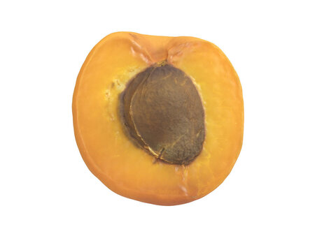 Highly detailed, photorealistic 3d scanned model of an apricot half. 8k texture maps, optimized topology and uv unwrapped.