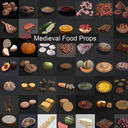 50 Plus High Quality Medieval Food Props 3D Model Collection