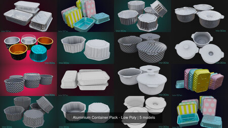 Pack containing a variety of lowpoly Aluminium Container with PBR textures.