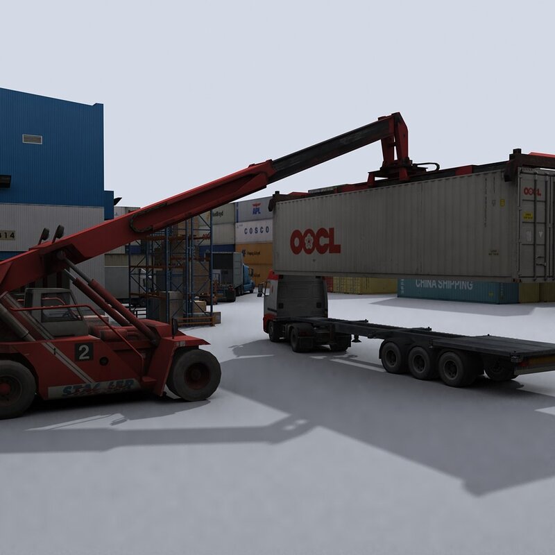 This is a collection of 12 realtime models of vehicles and machines related to the logistics & transportation.