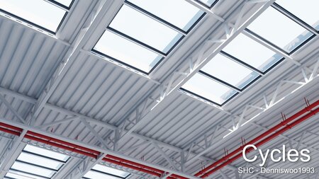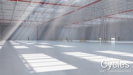This is a large modern industrial warehouse for Blender Eevee and cycles. (interior only) Everything in the scene is originally designed and modeled.