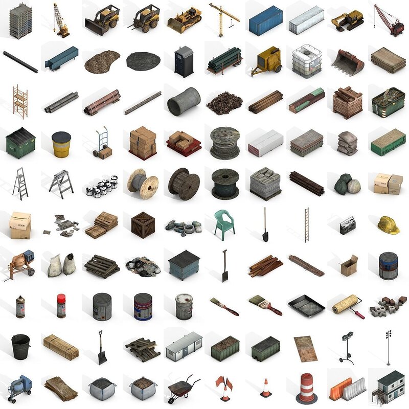 MILLENNIAL AUTOMOTIVE LLC » Our products » Industrial » Construction Assets Collection of Building Materials Low-poly 3D model