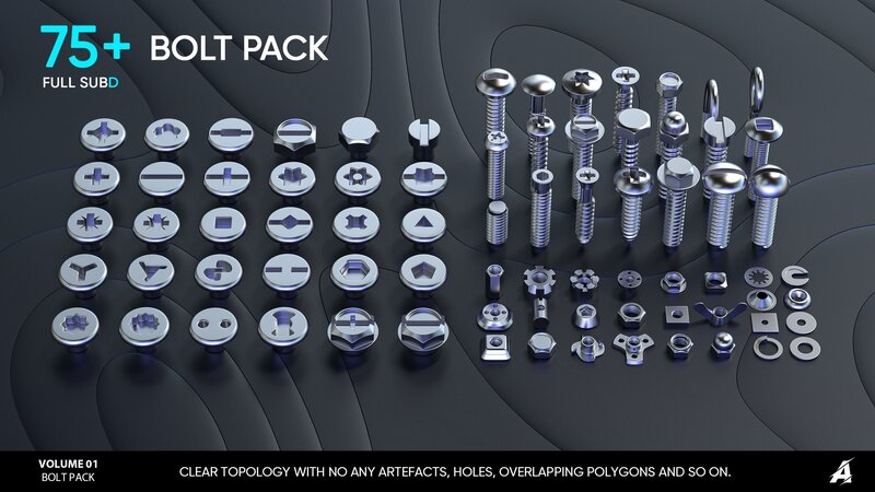MILLENNIAL AUTOMOTIVE LLC » Our products » Industrial » 75 BOLT PACK VOLUME 01 Low-poly 3D model
