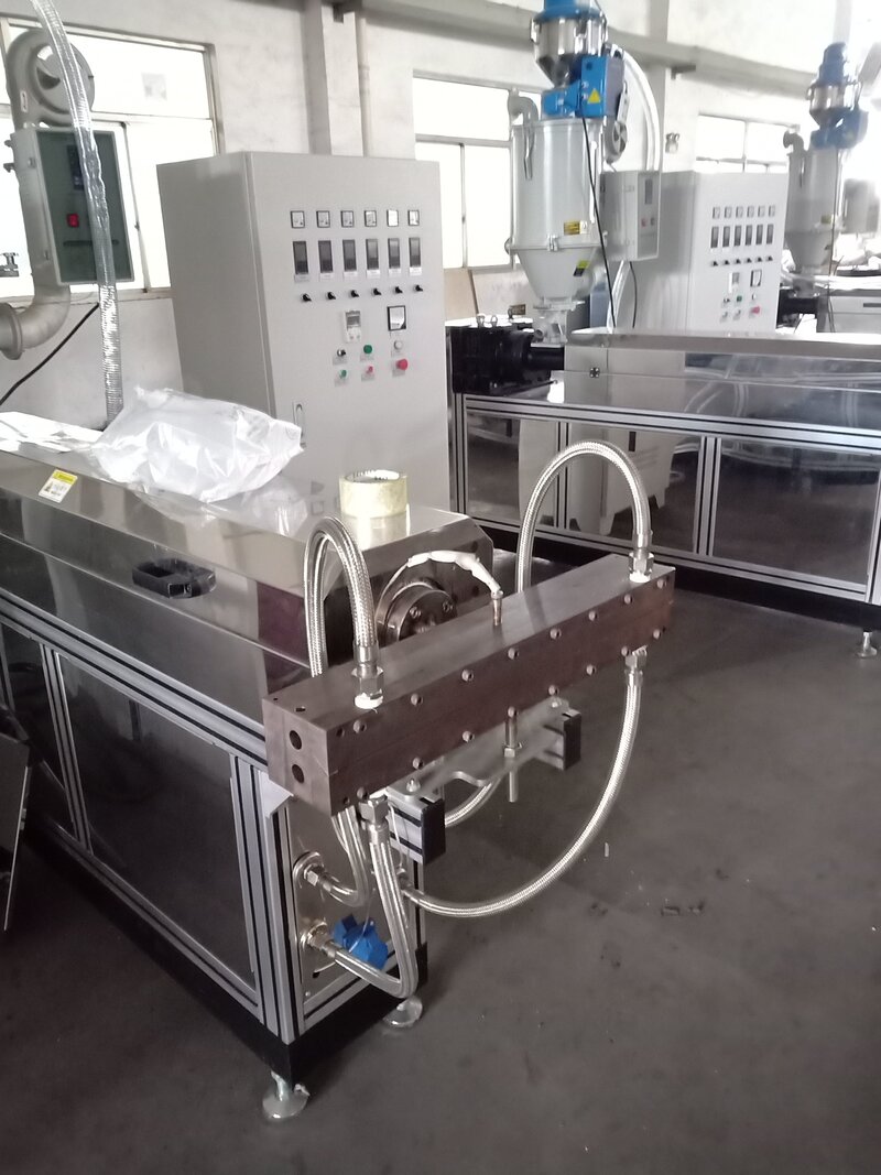 Melt-blown fabric extrusion molding machine ,it is for producing Melt-blown fabric. Melt-blown fabric is masks at the core of material, mainly polypropylene melt-blown cloth as the main raw material, the fiber diameter can reach 1 ~ 5 micron gap structure more fluffy fold resistance is good, has the unique capillary structure of superfine fiber increase the number of fibers per unit area and surface area, so that the melt-blown fabric has good filterability shielding insulation and oil absorption