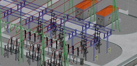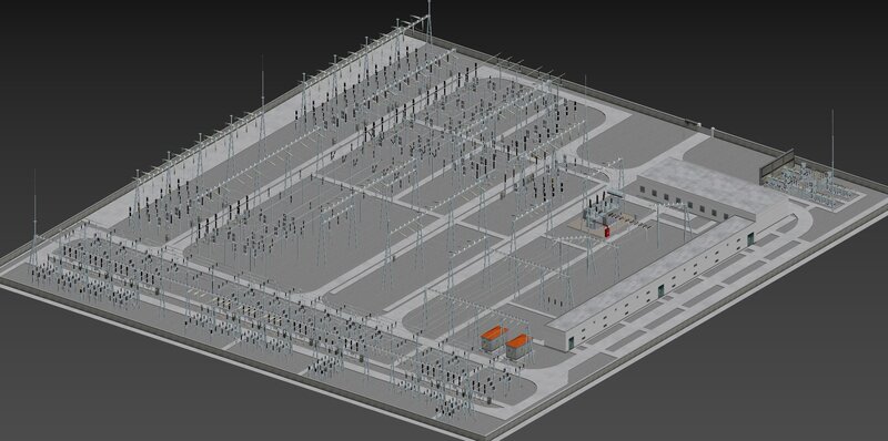 It's a complete 220kV substation with rich details. It includes cable lines and all the equipment has been modeled with high precision.