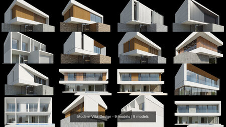 the archive file has 9 models of a residential Villa (Ground floor + First Floor) also in the archive there are perspectives. Export File: Fbx,3ds,collada, DWG,OBJ Vray version: 4 Corona version: 5 Textures included high resolution images