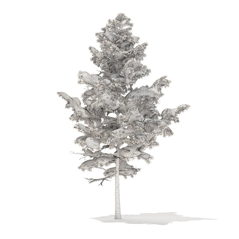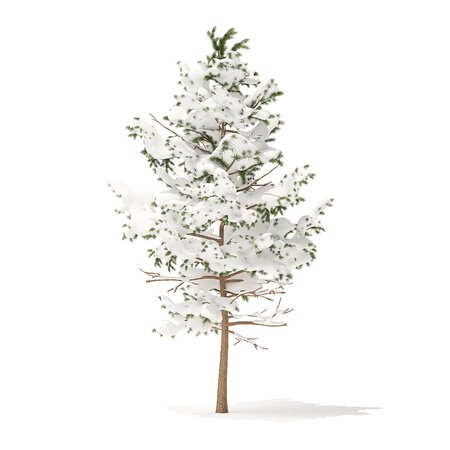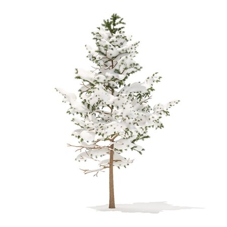 Pine tree with snow 3d model. Height: 5.1m. Compatible with 3ds max 2010 (V-Ray, Mental Ray, Corona) or higher, Cinema 4D R15 (V-Ray, Advanced Renderer), FBX, OBJ and VRMESH.